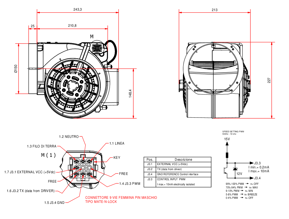 HEI-PMSM blower represents a flexible solution developed by EMC FIME to meet customers requirements on the residential ventilation and cooker hoods markets. The system is equipped with a brushless motor to catch up 1,200 m3/h airflow and it is characterized by: