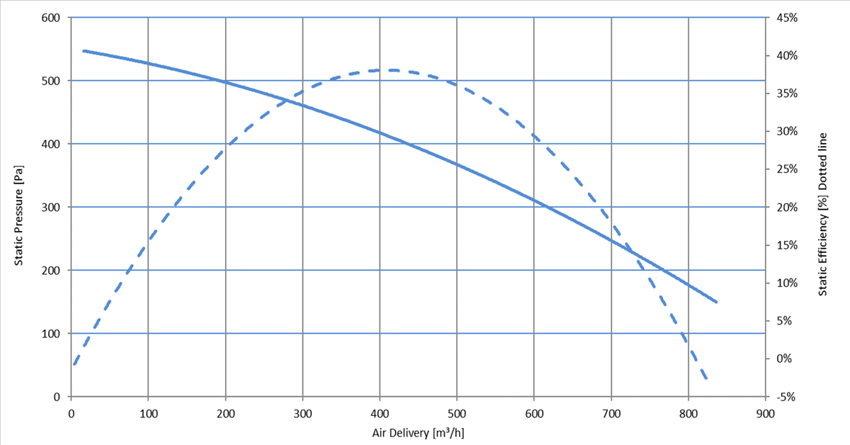 High-efficiency compact blower equipped with a brushless motor to reach air flow rates up to 850 m3/h, guaranteeing reduced noise levels and high energy efficiency in compliance with ErP directives.