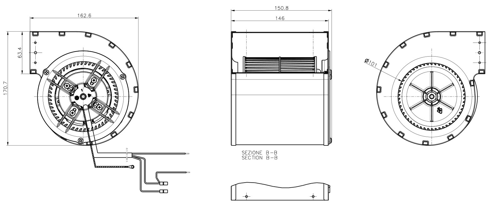 Double Suction Blower with shaded poles motor.